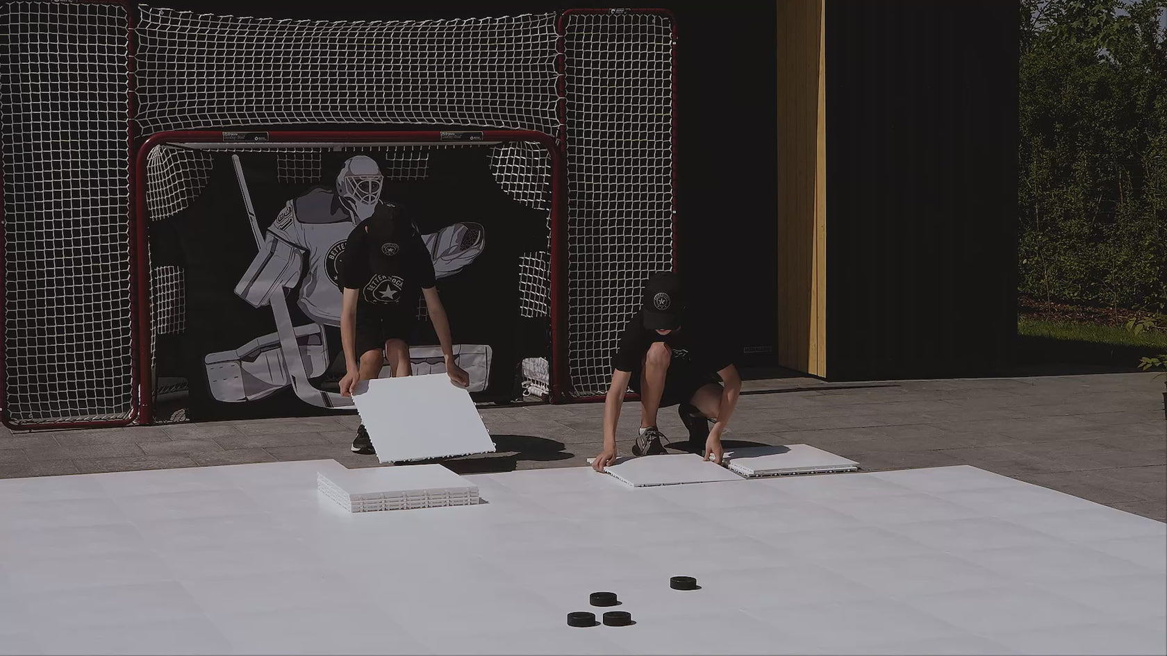 Experience the feel of real ice all year long! Create your very own training rink in the comfort of your home or yard with our premium quality synthetic tiles that give you the slick feel of real ice no matter what the weather is like outside. Our tiles provide a smooth, slick surface to work on your shooting, passing and stickhandling shots skills. These amazing dryland tiles are larger than most other tiles on the market, so you get a more seamless rink area with our tiles. Great for both amateurs and professionals alike, our flooring tiles are used by over 100 NHL players and have incredible glide with regular pucks. Please note these tiles are not designed for skating. Ultra durable, weatherproof design Our tiles are treated with a weather-proof coating that allow for year-round use anywhere indoors or outdoors. Please note that these are intended for off-ice training only and should not be used for skating. Our floor panels are easy to assemble, and you can create a world-class training rink in just minutes. Great for hockey players of all ages Our super slick hockey tiles are great for both kids and adults to use. They help create the perfect environment to work on shooting, stickhandling and passing skills in your own backyard, driveway or basement.