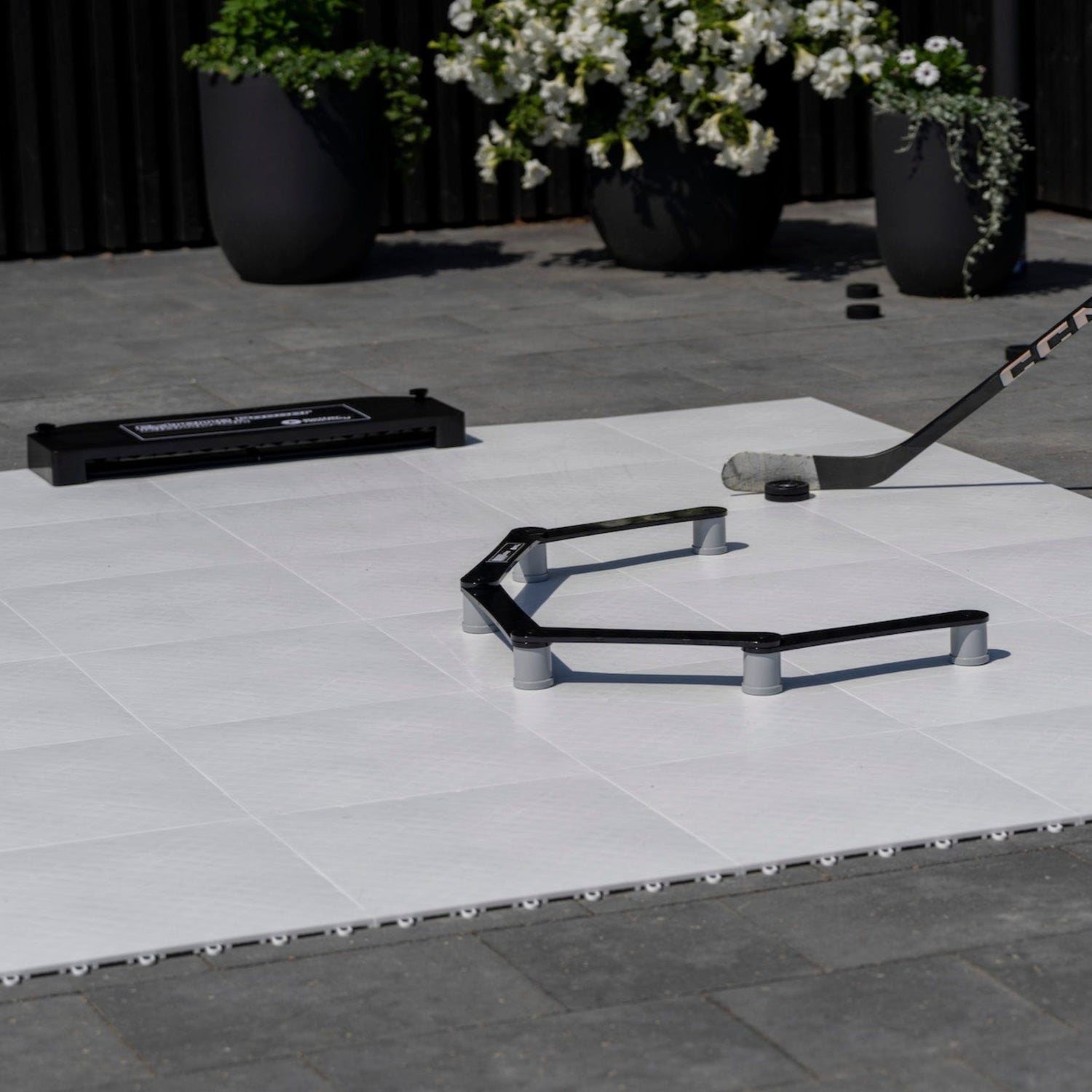 30-pack (2 m² / 67.5 sq. ft.) of the Extreme Hockey Flooring Tiles, the best hockey tiles on the market. More than 100 NHL-players train with these awesome 18"x18" / 47x47 cm dryland floor tiles.