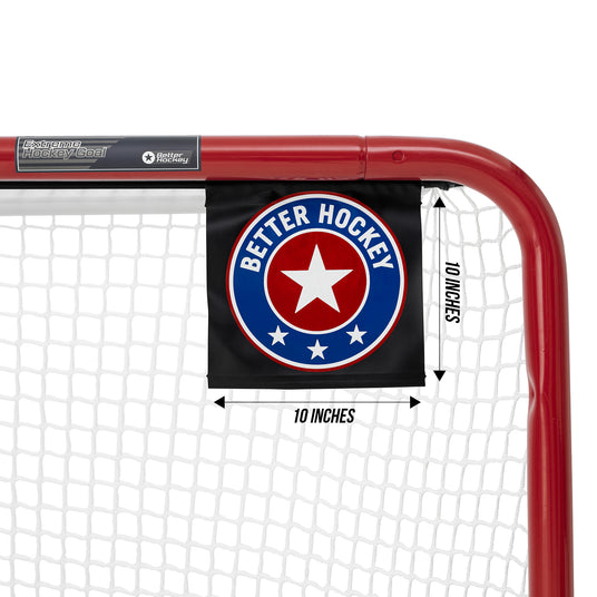 These 10"x10" shooting targets will help your score more goals! Installed in seconds on any regular sized hockey goal.